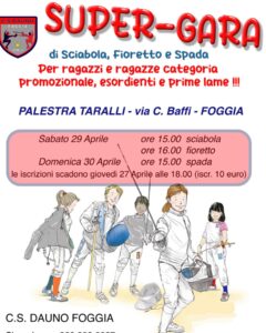 A margine infine il Circolo Schermistico Dauno ha messo a disposizione le proprie pedane per una manifestazione promozionale e preagonistica alle 6 armi.