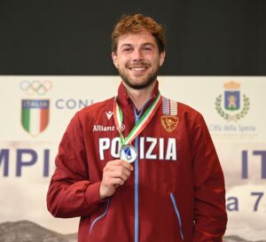 La prima giornata di gare ai Campionati Italiani Assoluti in corso di svolgimento al PalaMariotti di La Spezia regala subito tre medaglie alla scherma pugliese: il foggiano delle Fiamme Oro Francesco Bonsanto è secondo nella sciabola maschile, nella stessa gara il sanseverese del Centro Sportivo Esercito Emanuele Nardella è medaglia di bronzo mentre nella sciabola femminile Michela Battiston, friulana in forza all’Aeronautica Militare e che si allena al Circolo Schermistico Dauno, chiude al terzo posto.