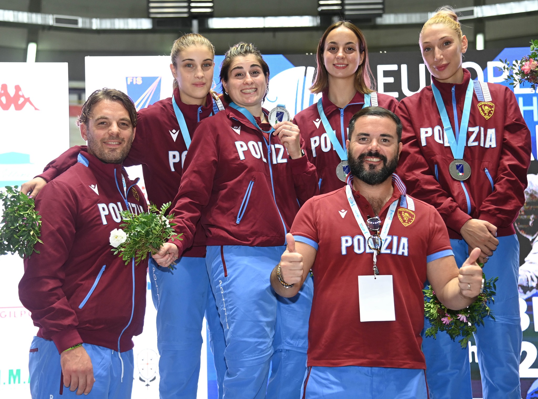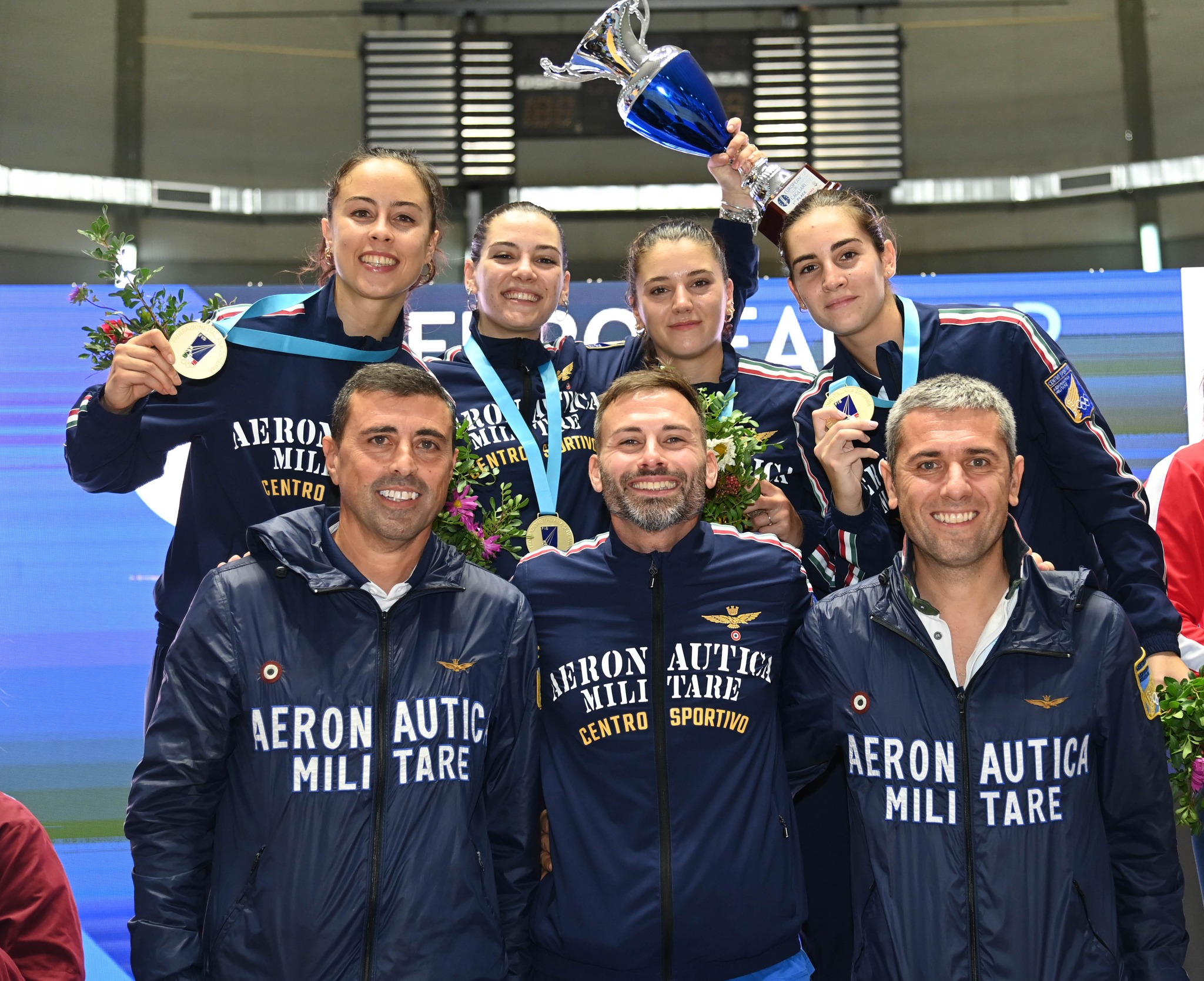 Nella sciabola femminile vince il titolo continentale la squadra dell’Aeronautica Militare formata da Michela Battiston (friulana di nascita ma ormai foggiana d’adozione, allenandosi presso il Circolo Schermistico Dauno), Alessia Di Carlo, Rebecca Gargano e Claudia Rotili, che in finale ha avuto la meglio per 45-37 in un derby tutto italiano sulle Fiamme Oro, di cui fanno parte la foggiana Martina Criscio, Sofia Ciaraglia, Eloisa Passaro e Lucia Stefanello. Nei turni precedenti le neo campionesse d’Europa avevano superato l’Olanda per 45-18 e la Bulgaria per 45-42 mentre la squadra della Polizia di Stato aveva messo in riga l’Ucraina per 45-28 e le madrilene del Club de Esgrima El Oso y El Madrono per 45-41. Medaglia di bronzo alle spagnole (45-42 alla Bulgaria).