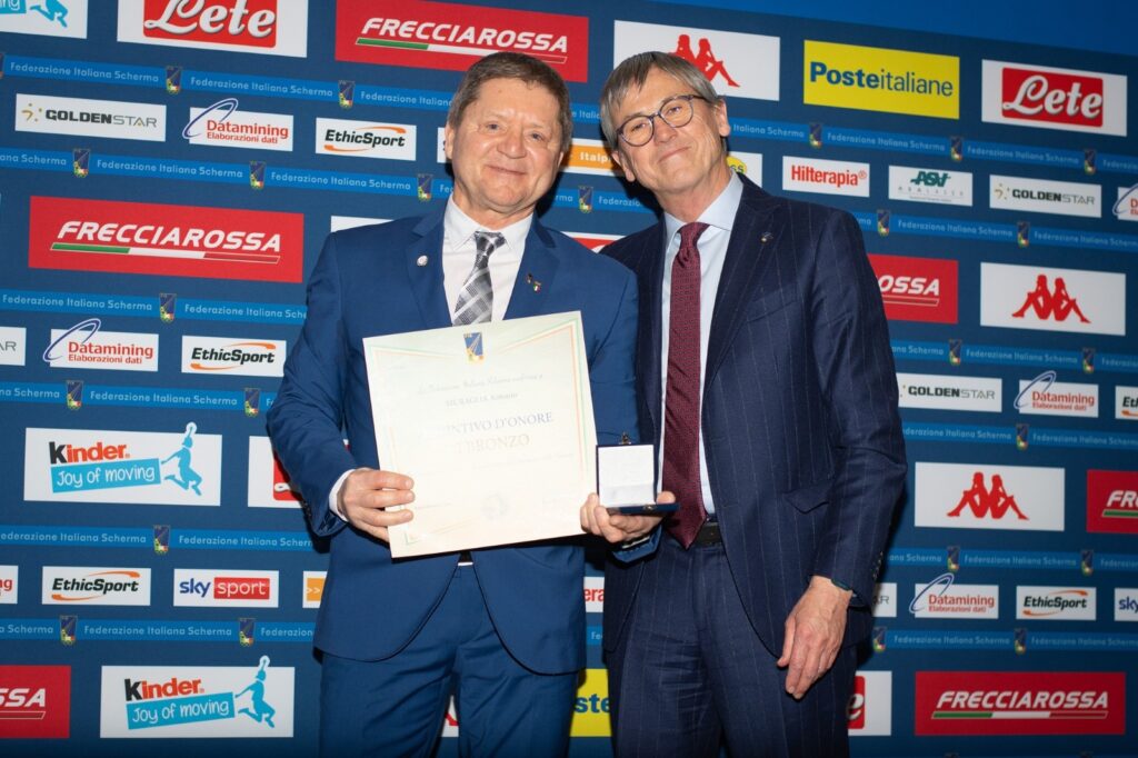 Tra i tecnici premiati anche il Vice presidente vicario del Comitato Regionale Pugliese, il brindisino Antonio Muraglia, che ha così commentato il riconoscimento: “Con forte commozione ma tanto tanto orgoglio sono stato insignito della onorificenza del Distintivo d’onore Maschera di Bronzo per l’impegno profuso in oltre trenta anni di attività nell’insegnamento della scherma”.