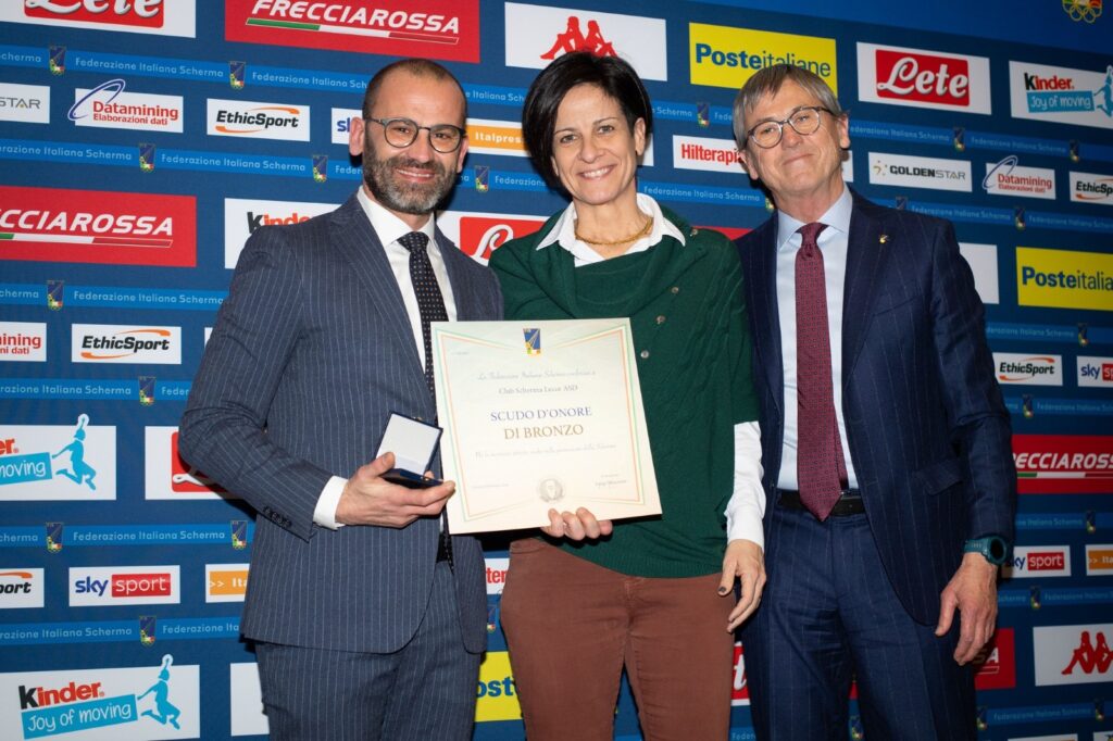 - Scudo d’Onore di Bronzo per le Società al Club Scherma Lecce (per quest’ultima Società ha ritirato il premio il Presidente del Comitato Regionale Federscherma Puglia Roberto Lippolis).