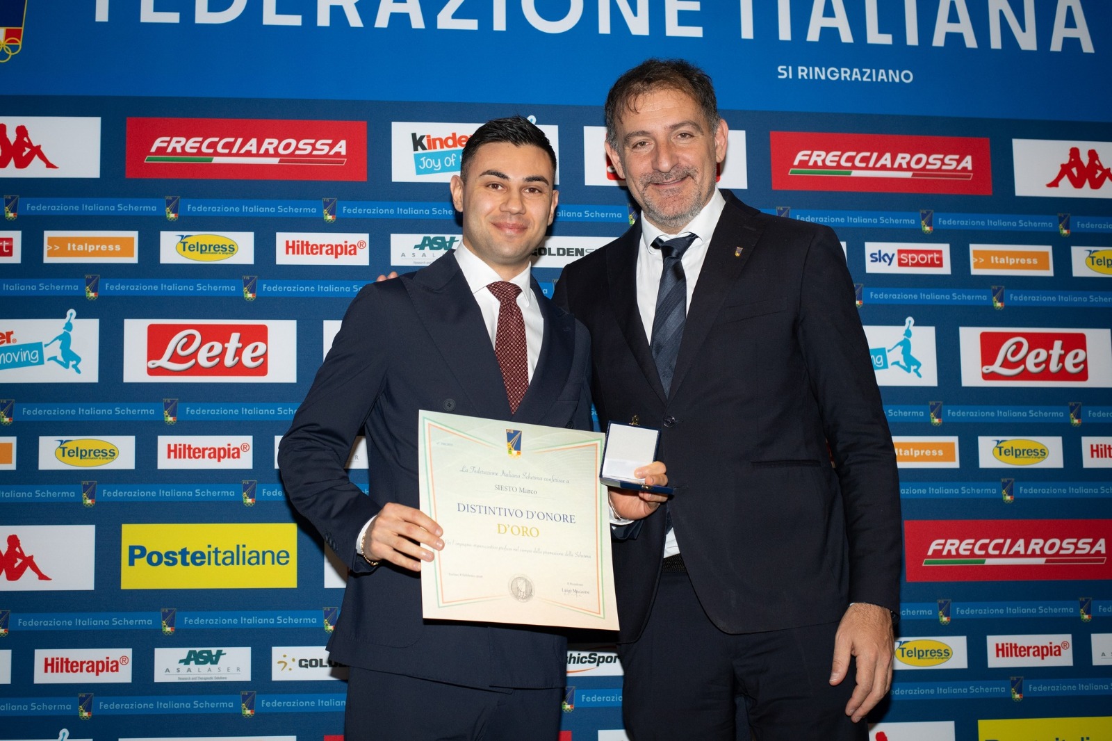 - Distintivo d’Onore d’Oro a Marco Siesto per aver rappresentato la Federazione Italiana Scherma come componente del GSA in occasione di Giochi Olimpici (ha ritirato il premio in sua vece Francesco D’Armiento);