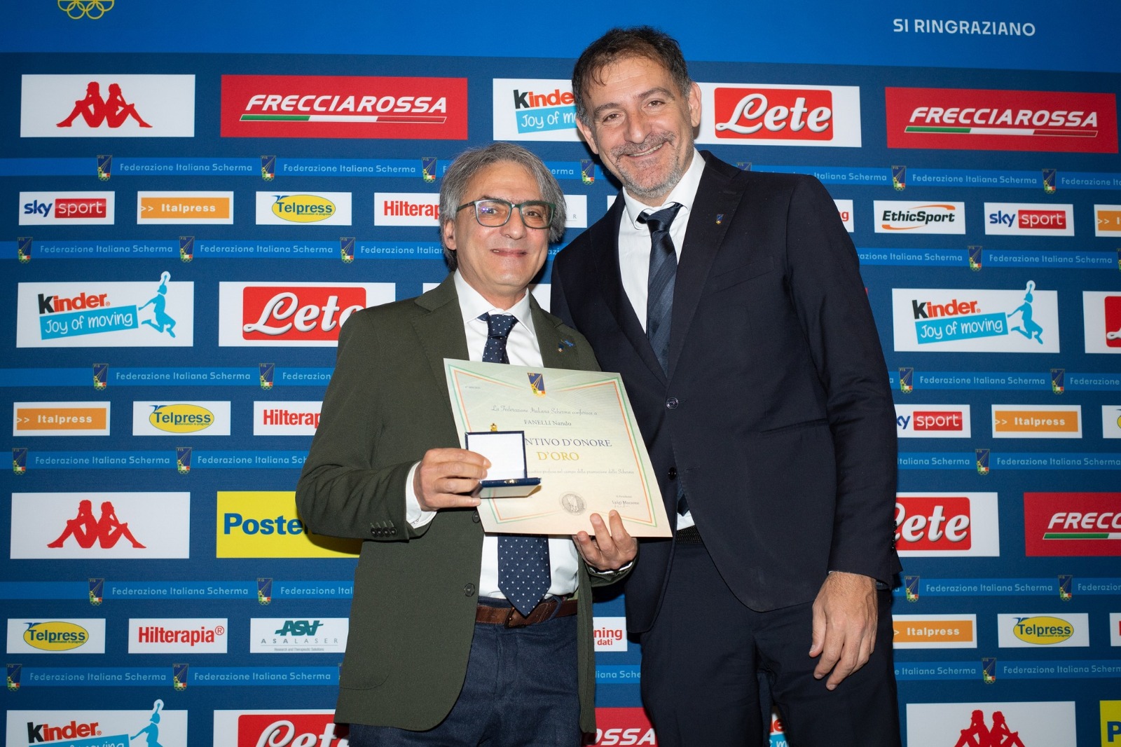 - Distintivo d’Onore d’Oro a Nando Fanelli per aver rappresentato la Federazione Italiana Scherma come Componente del GSA da oltre 15 anni;