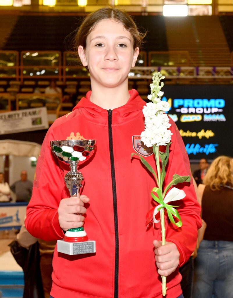 Marseglia ha invece battuto per 10-7 Mariasole Scudieri (Posillipo Napoli) e Ivette Morrone (Ager Nucerinus) ma poi in semifinale si è arresa col medesimo punteggio a Giuditta Pistacchi del Club Scherma Voltri, a sua volta sconfitta in finale per 10-5 da Giorgia Ricciardi (Milleculure Napoli). Con la foggiana sale sul terzo gradino del podio anche Emma Terranova (Petrarca Scherma). Da segnalare anche il decimo posto di Erica Maria Tecuceanu del Club Scherma Casalvecchio di Puglia e Lucera, l’undicesimo di Angela Catania della Scherma Trani, il 14° e 15° posto di Maria Francesca Casciato e Sofia Liemonte del Club Scherma San Severo, il 22° di Alena Todisco della Scherma Trani e il 25° di Alysia Silvestri del Dauno.