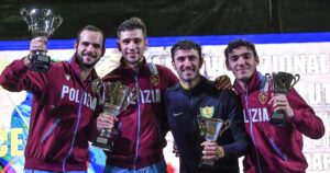 Puglia sul podio anche nella sciabola maschile grazie all’inossidabile Luigi Samele: l’atleta foggiano delle Fiamme Gialle, a sua volta secondo nell’individuale ad Algeri in Coppa del Mondo, ha sconfitto nell’ordine Filippo Picchi (Fides Livorno) per 15-7, Davide Cicchetti del Circolo Schermistico Dauno col medesimo punteggio, Leonardo Dreossi dell’Aeronautica Militare per 15-4 e Mattia Rea dei Carabinieri per 15-11 ma in semifinale è stato superato col punteggio di 15-13 da Riccardo Nuccio delle Fiamme Oro che poi ha vinto la gara battendo all’ultima stoccata il compagno di squadra Luca Curatoli; sul terzo gradino del podio assieme a Samele c’è Pietro Torre, anch’egli delle Fiamme Oro.