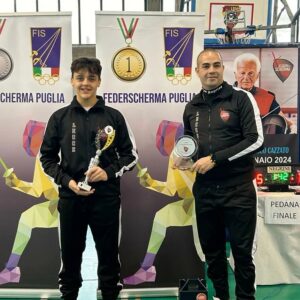 Infine nella spada maschile Giovani vince Luca Cianci del Club Scherma Bari che in finale batte Giacomo Maria Pizzolante del Club Scherma Taranto col punteggio di 15-12. Terzo posto per Simone Toscano delle Lame Azzurre Brindisi (terzo il giorno prima e battuto in semifinale da Pizzolante all’ultima stoccata) e per Alessio Ingrosso del Club Scherma Lecce (che replica il piazzamento del giorno precedente e che in semifinale ha perso 15-8 con Cianci). Si qualificano anche Andrea Dinelli, Valerio Dachille e Andrea Suriano, tutti del Club Scherma Bari, mentre Aldo Cretì dell’Accademia Scherma Lecce, vincitore il giorno prima tra i Cadetti, è ottavo. Lorenzo De Giacomo della Scherma Isernia è il migliore degli atleti molisani ed ottiene il pass per la sua regione.