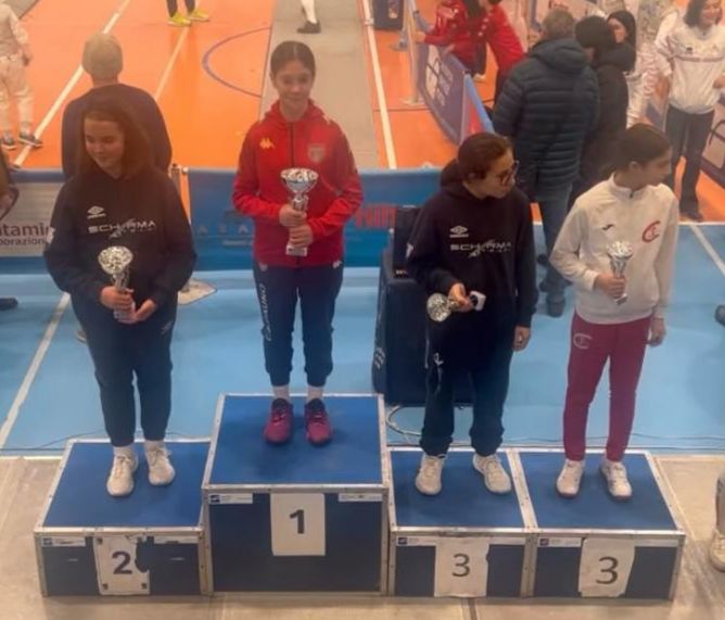 Nelle Bambine si impone Paola Forziati del Club Sportivo Partenopeo che in finale regola 10-5 Francesca Maria Feleppa dell’Accademia Olimpica Beneventana, terze a pari merito Ilaria Caggiano del Club Scherma Bari e Nunzia Iannaccone (Rajputs Avellino). Sesto posto per Sofia Spadavecchia del Club Scherma Lecce.